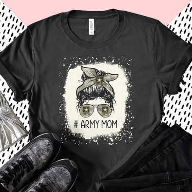 US Army Mom Messy Bun Hair Glasses T-shirts