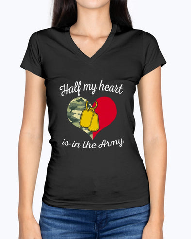 US Army Mom Half My Heart T-shirts
