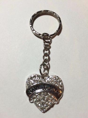 Heart Shaped Navy Mom Keychain