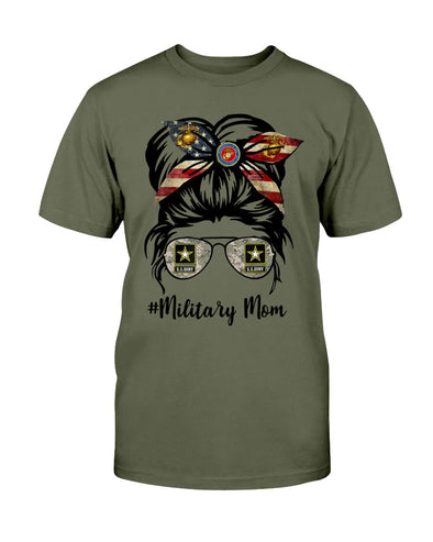 Military Mom Messy Bun T-shirts