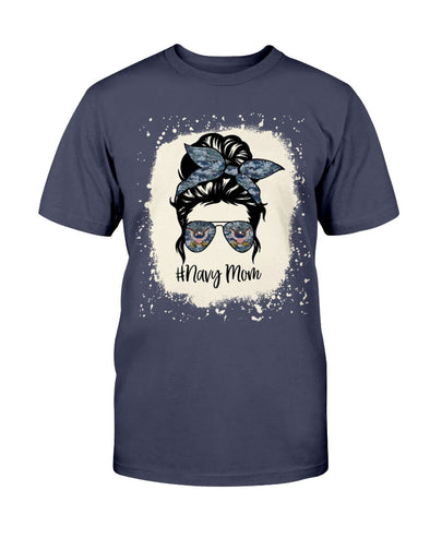 US Proud Navy Mom Messy Bun T-shirts