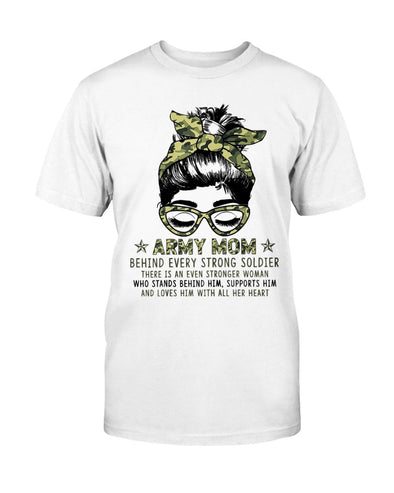 Army Mom Behind Messy Bun T-shirts
