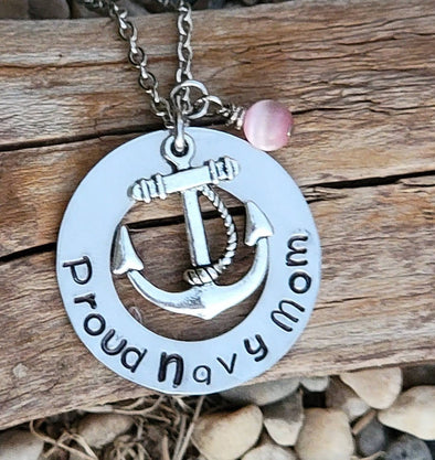 Navy Mom necklace Birthstone Stainless Steel