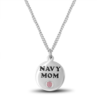 Silver Navy Mom Disc Necklace