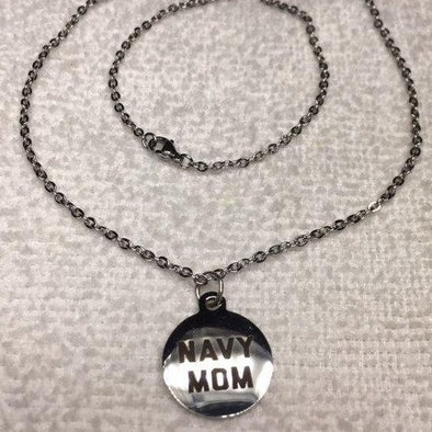 Navy Mom Disc necklace on Stainless Steel Chain